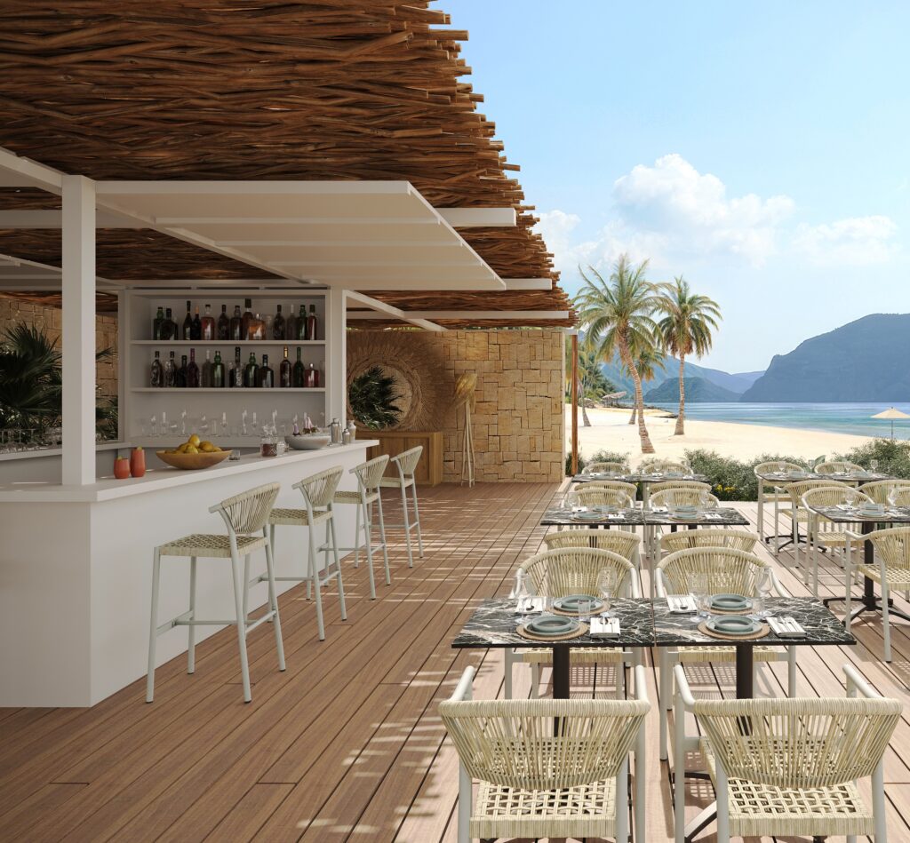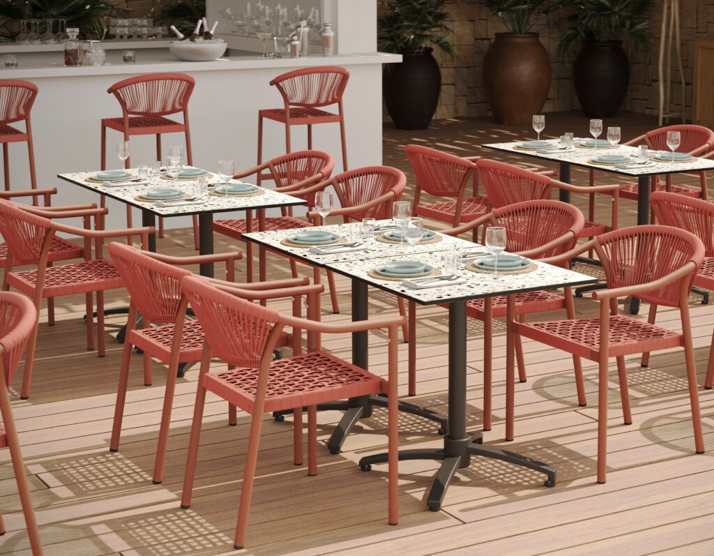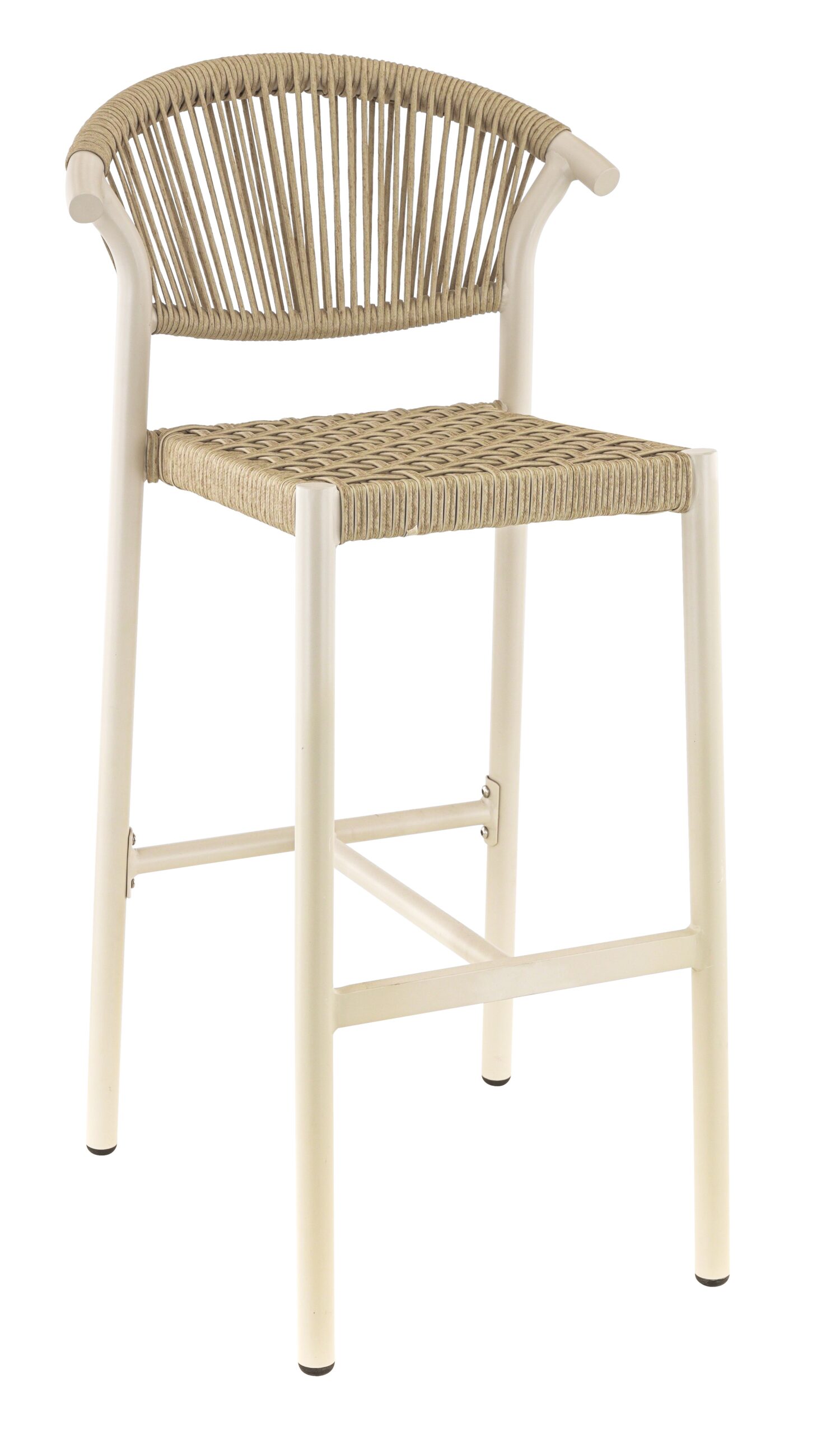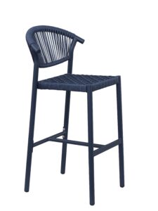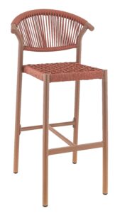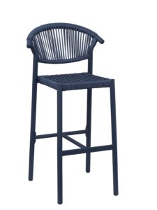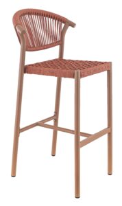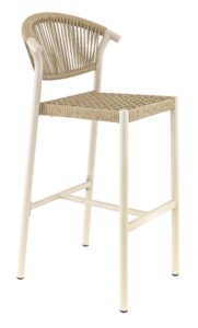 Tabouret Alicante, structure en aluminium avec peinture epoxy, tressage PE rond effet corde, disponible dans les coloris terra, sable ou bleu abysse