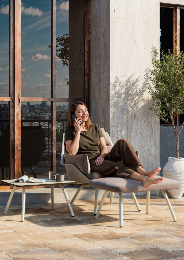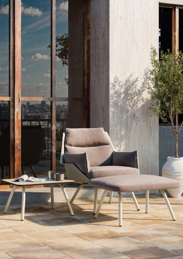 Ce fauteuil lounge invite à la détente grâce à sa coque d’assise généreuse et confortable en polypropylène injecté renforcé de fibre de verre, entièrement rembourrée. Disponible en 5 élégantes combinaisons de couleurs. Piètement en métal. Le pouf assorti ainsi que la table d’appoint complètent cette ligne. Convient aussi bien à un usage intérieur qu’extérieur.