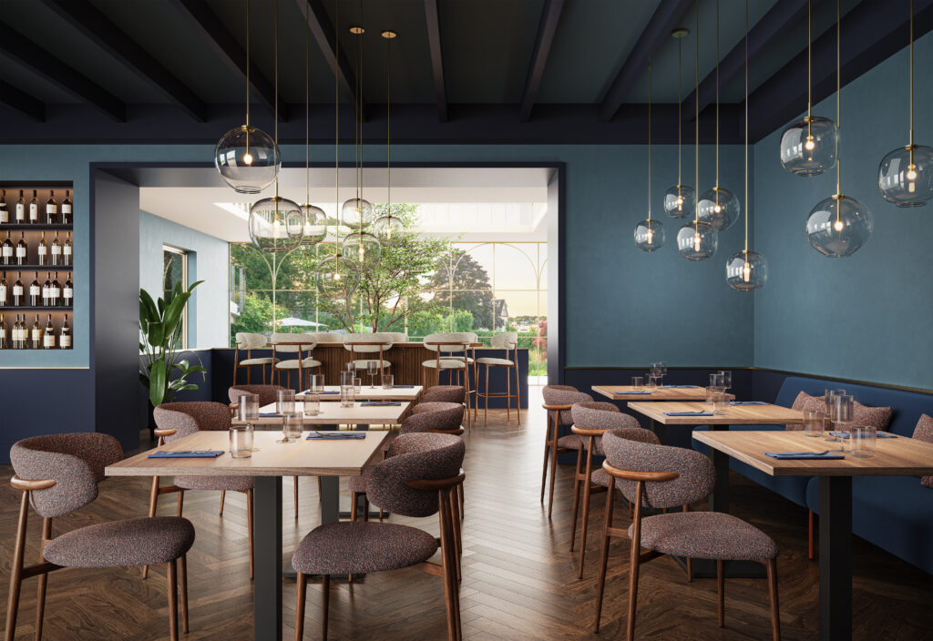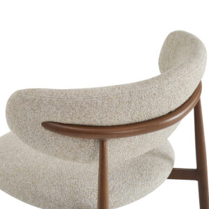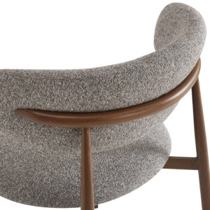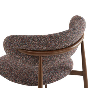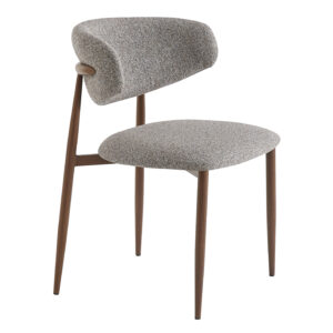 Chaise Bonnie, structure en acier imitation noyer, assise et dossier garnis de tissu Adventure, disponible dans les coloris greige (08), rouge & bleu (78) ou gris & brun (90)