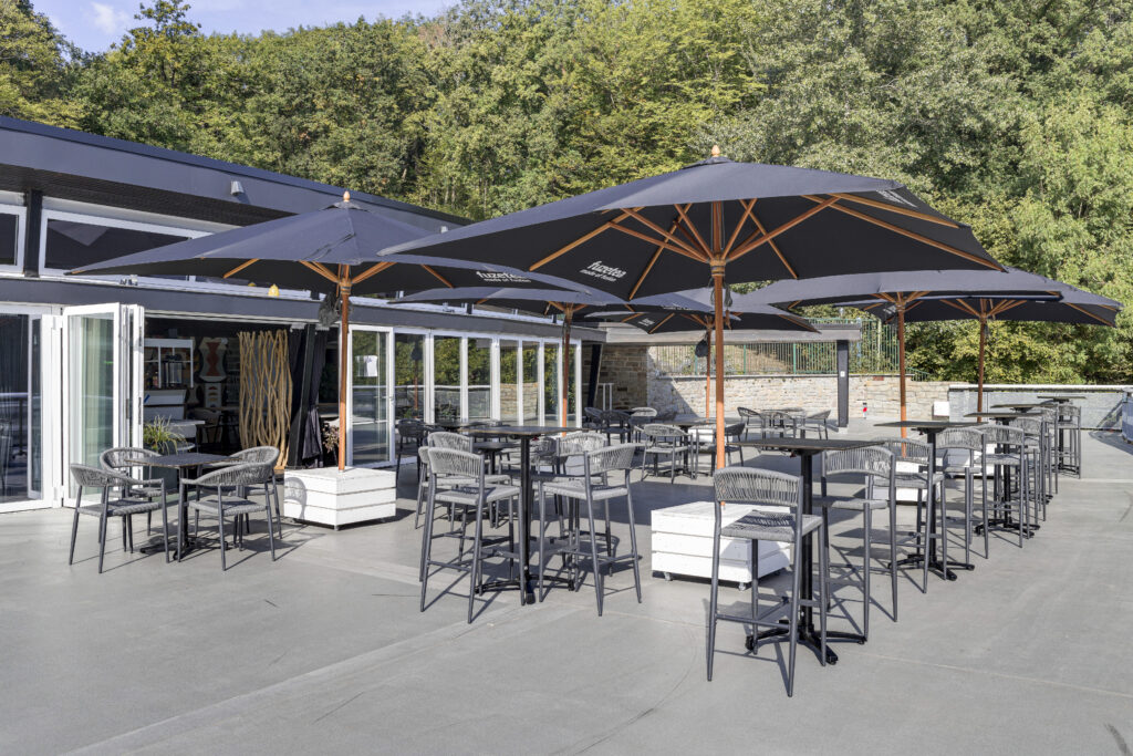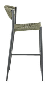 Tabouret Breda, structure en aluminium avec peinture epoxy coloris anthracite, tressage PE torsadé 5mm disponible dans les coloris anthracite, paille ou vert olive