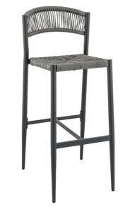Tabouret Breda, structure en aluminium avec peinture epoxy coloris anthracite, tressage PE torsadé 5mm disponible dans les coloris anthracite, paille ou vert olive