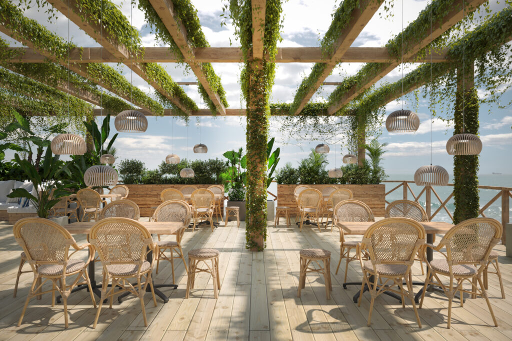 Tabouret bas empilable Brest, structure en aluminium col. caramel, avec tressage PE imitation rotin coloris noisette