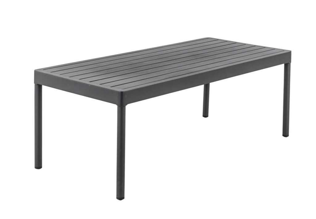 Table basse en aluminium avec lattage ajouré, coloris anthracite, 110x53xm, hauteur 40cm, poids 3,7kg