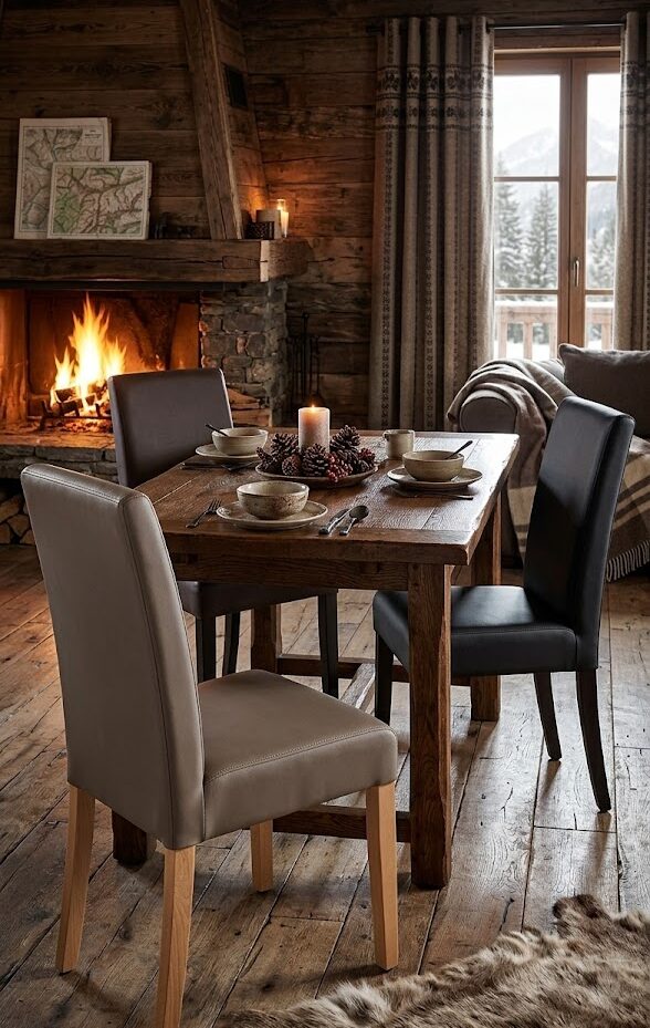 Chaise Clinton, structure en hêtre teinté (Naturel ou wengé), assise et dossier garnis de similicuir PU LOTOS