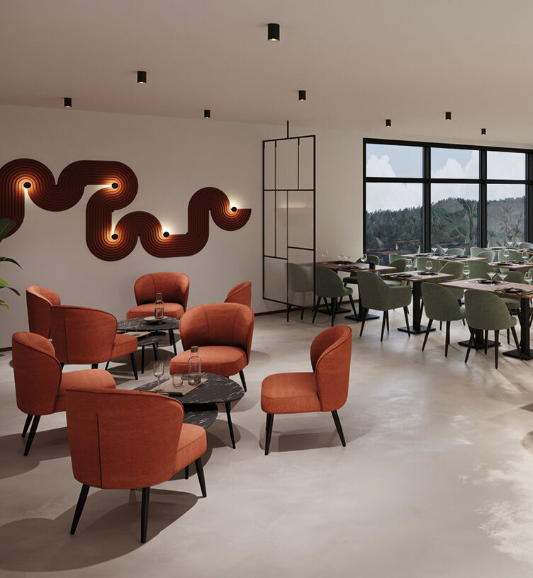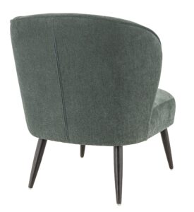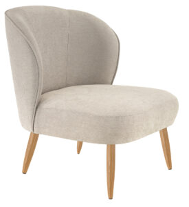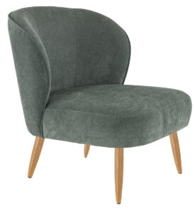 Fauteuil Clothilde, structure en hêtre teinté disponible en coloris noir ou naturel, assise et dossier garnis de tissu Wind, disponible dans les coloris vert (75), greige (05) ou terra (56)