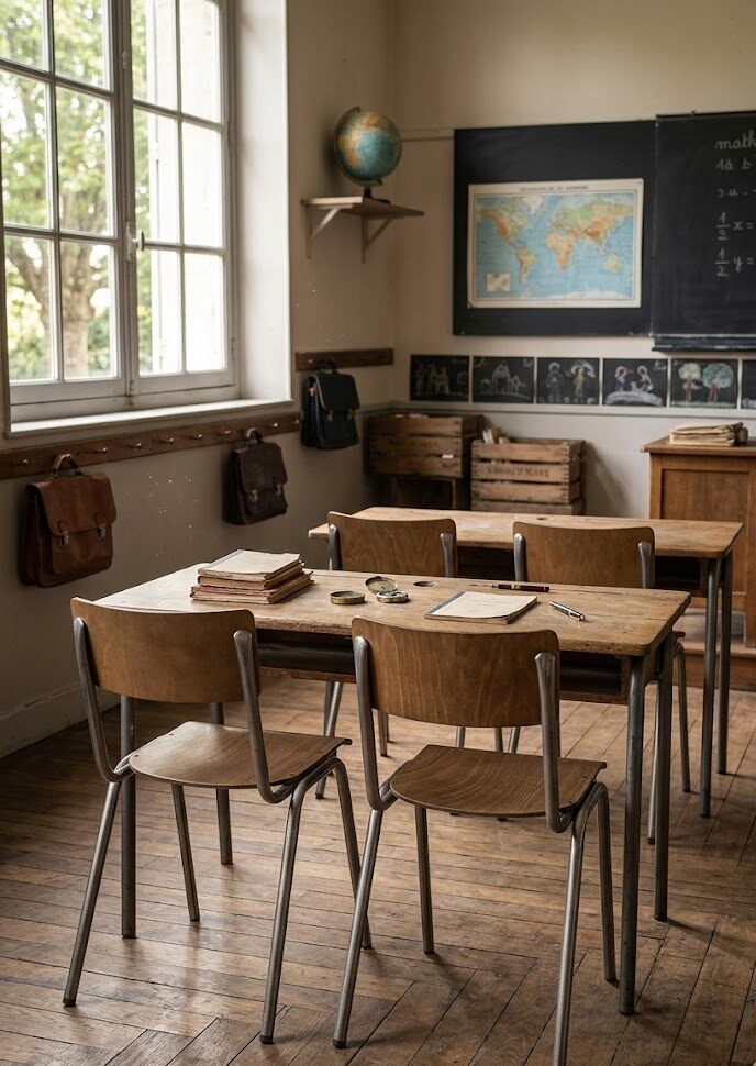 Chaise Collège, structure en métal finition industrielle, vernis brillant, assise et dossier en contre-plaqué