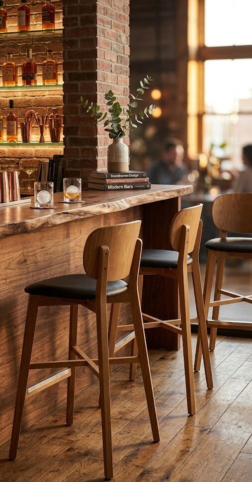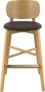 Tabouret Dimitri, structure en hêtre teinté (chêne miel), assise garnie de similicuir PU LOTOS, coloris noir (7006)