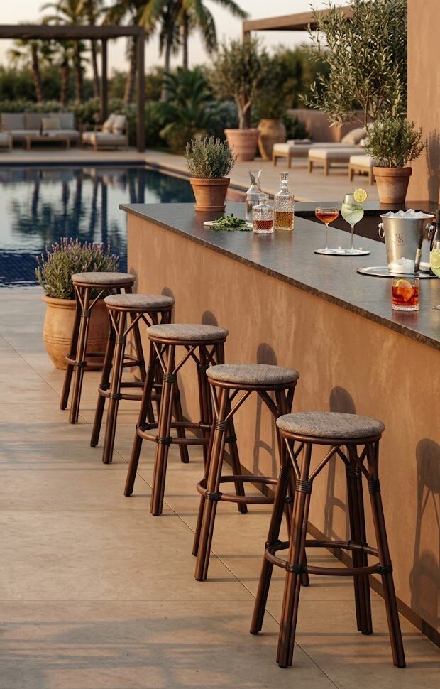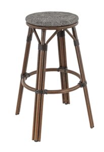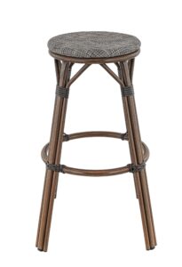 Tabouret Dole, structure en aluminium avec peinture epoxy en optique bambou col. noisette, tressage textilène 4×4 coloris gris & beige
