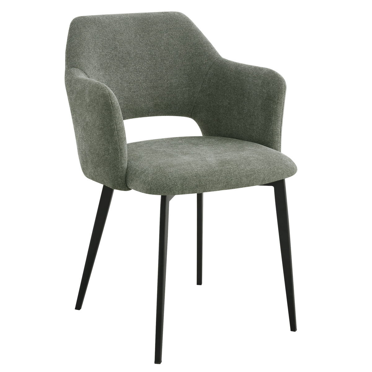 Fauteuil Francis, structure en métal noir, assise et dossier garnis de tissu Storm, disponible dans les coloris vert (37), greige (09) ou anthracite (99)