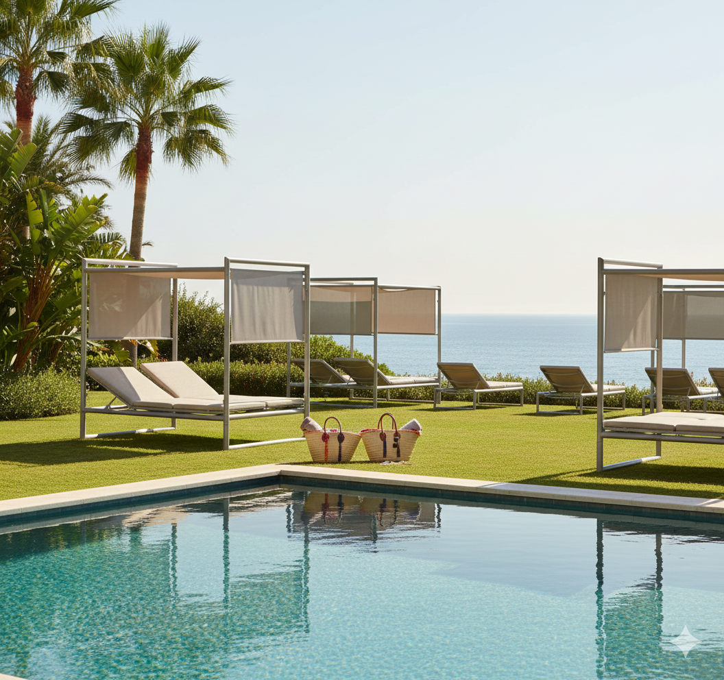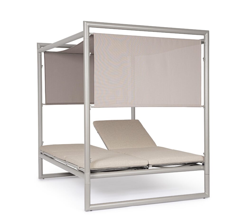 La gamme Galaxy s’agrandit avec ce daybed en aluminium thermolaqué, assise en toile textilène, 4 positions, réglable de chaque côté, coussins déhoussables en toile déperlante Olefin, visserie en inox, disponible en coloris anthracite, blanc ou greige.