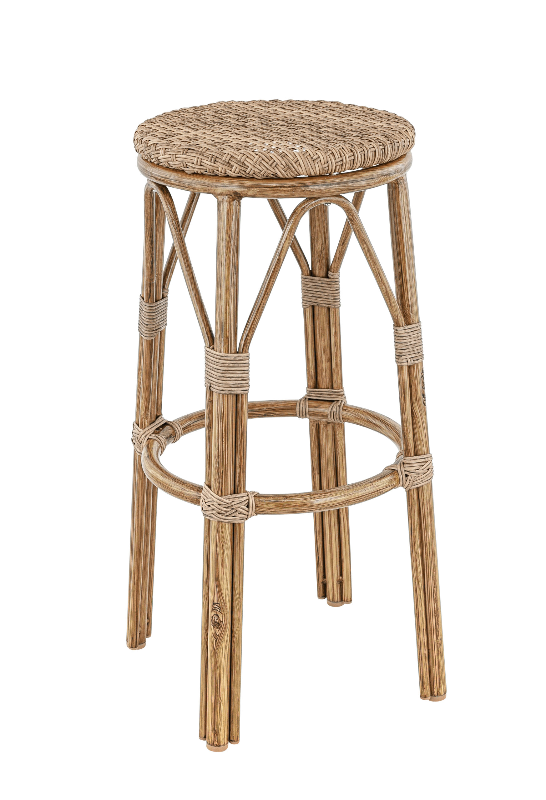 Tabouret Laval, structure en aluminium col. caramel, avec tressage PE imitation rotin coloris noisette