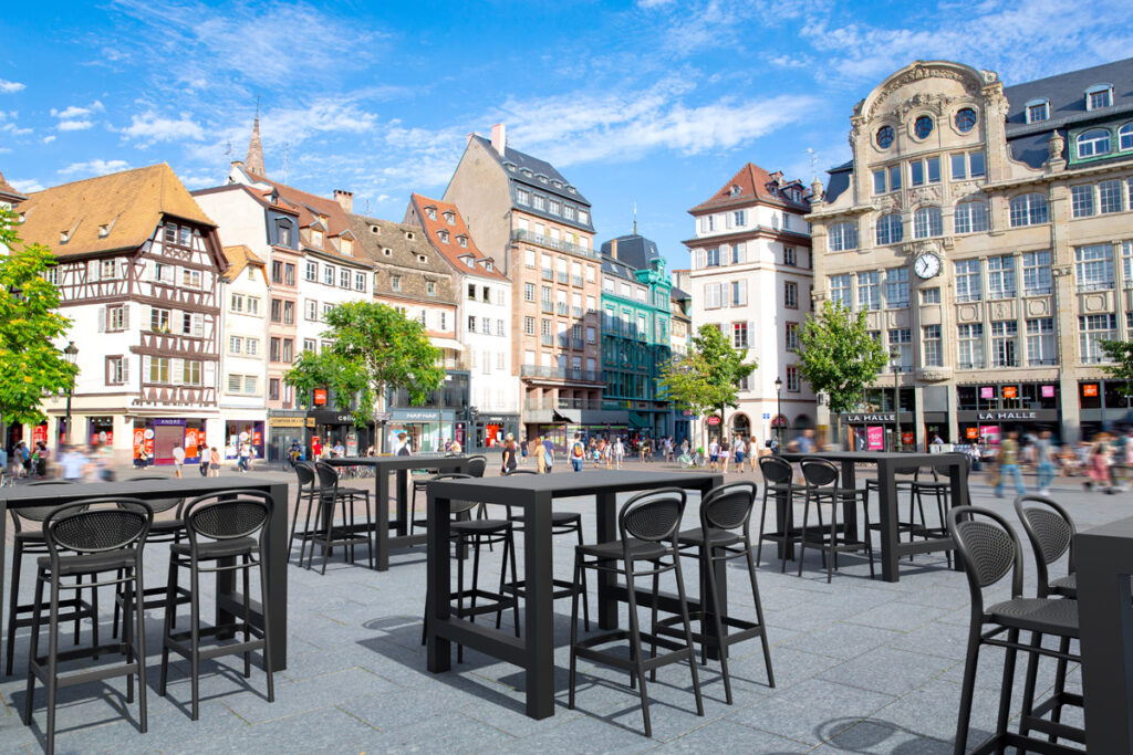Tabouret empilable Marcel Bar 75, structure en polypropylène monobloc renforcé avec de la fibre de verre, coloris noir