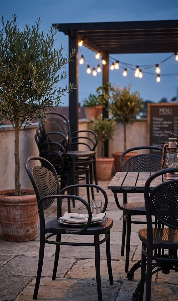 Fauteuil empilable Marcel XL, structure en polypropylène monobloc renforcé avec de la fibre de verre, coloris noir