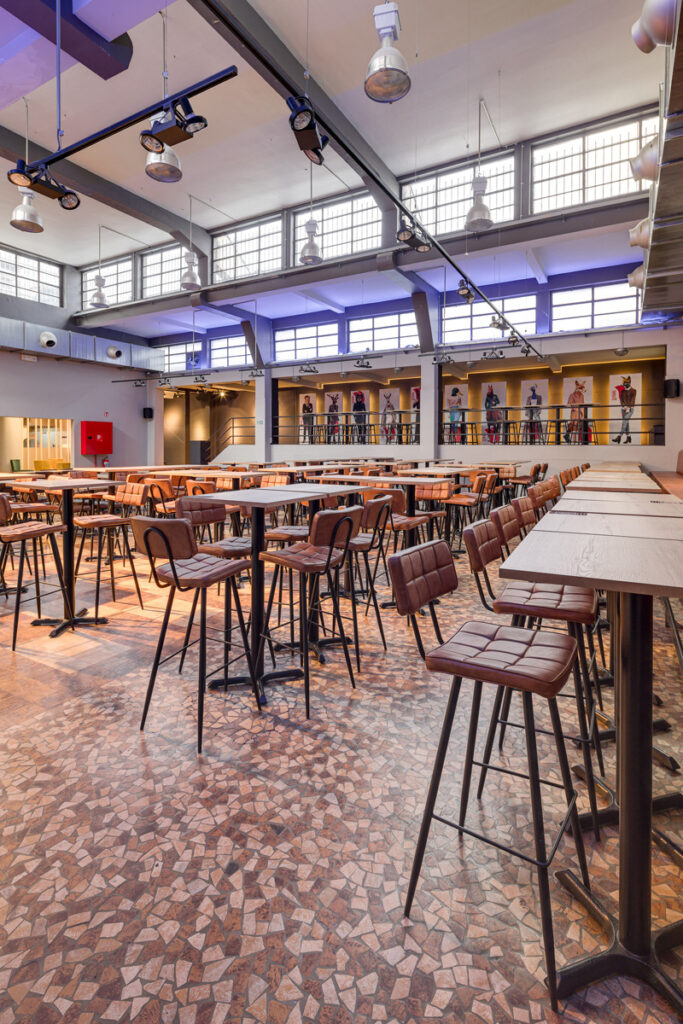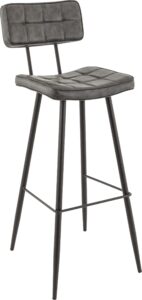 Tabouret Maurice, structure en métal noir, assise et dossier garnis de similicuir PU, disponible dans les coloris anthracite ou cognac.
