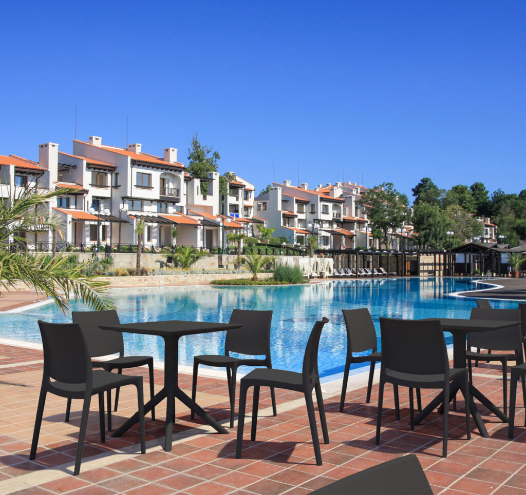 Chaise empilable Maya, structure en polypropylène monobloc renforcé avec de la fibre de verre, disponible dans les coloris olive, gris, blanc ou noir