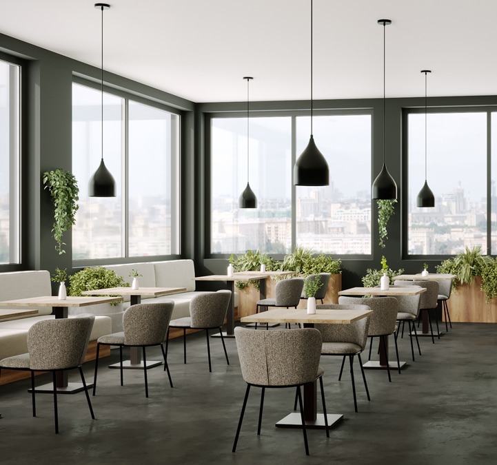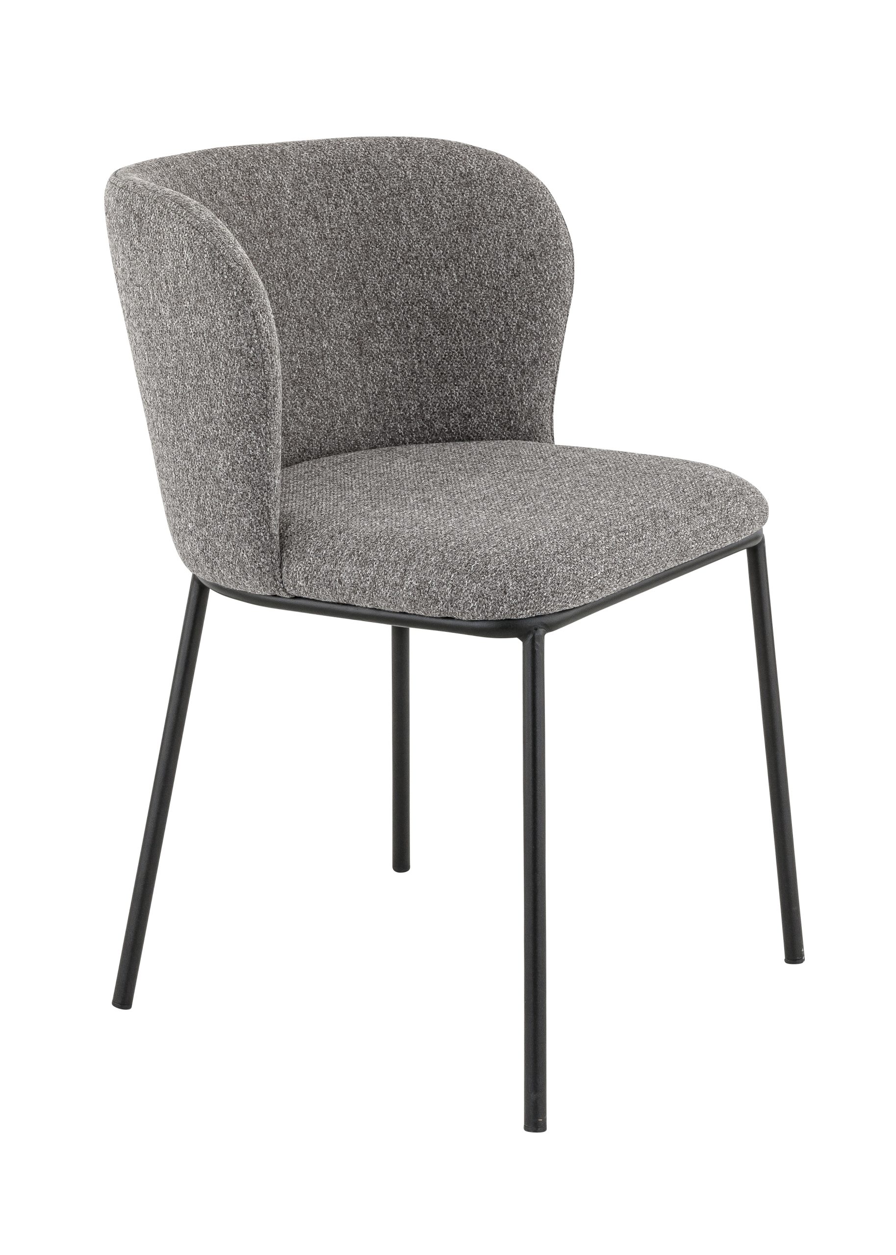 Chaise Mélina, structure en métal coloris noir, assise et dossier garnis de tissu Gava coloris gris