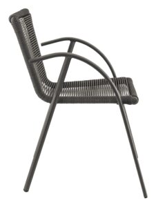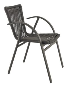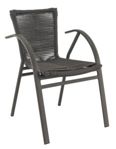 Fauteuil empilable Saint-Raphaël, structure en aluminium avec peinture epoxy coloris anthracite, tressage TPU rond effet corde coloris anthracite