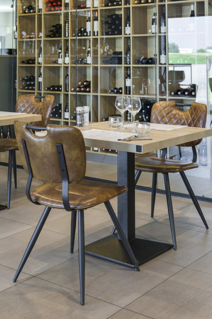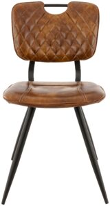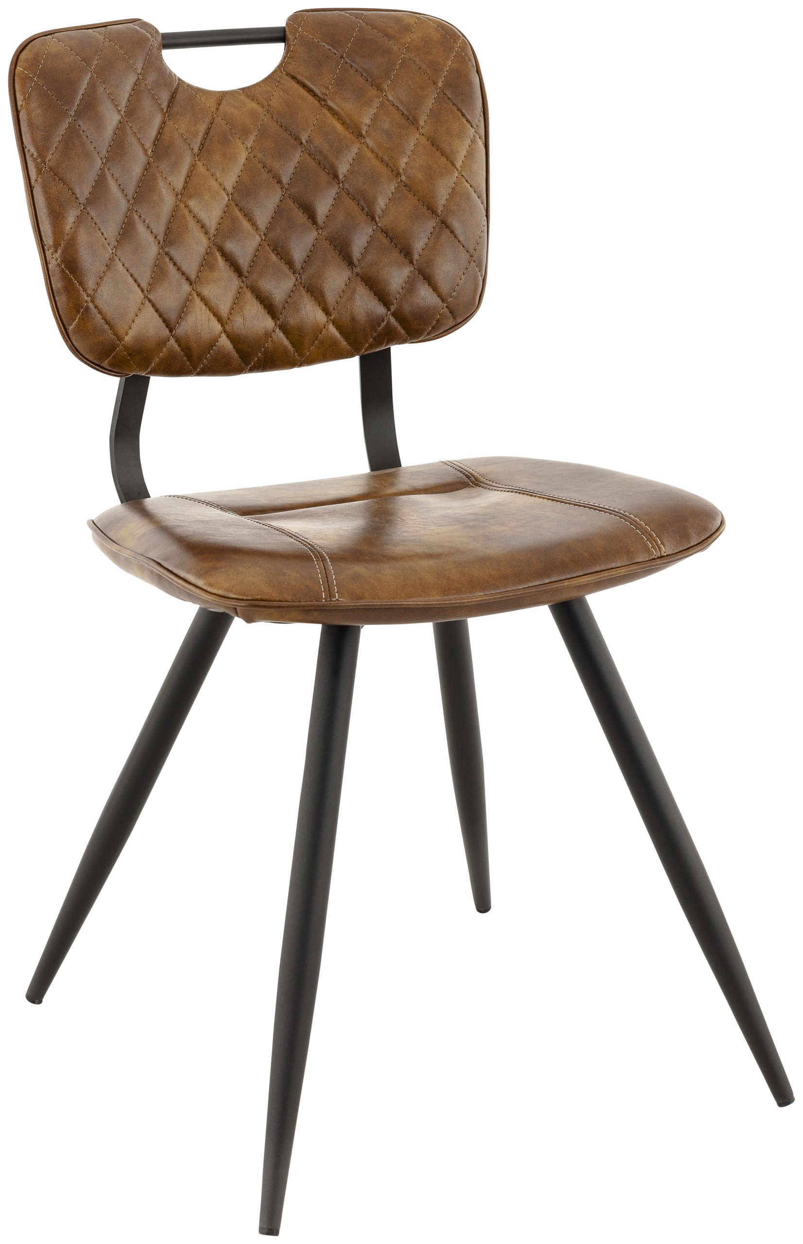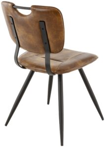 Chaise Soho, structure en métal noir, assise et dossier garnis de simili PU, disponible dans les coloris Cognac Vintage