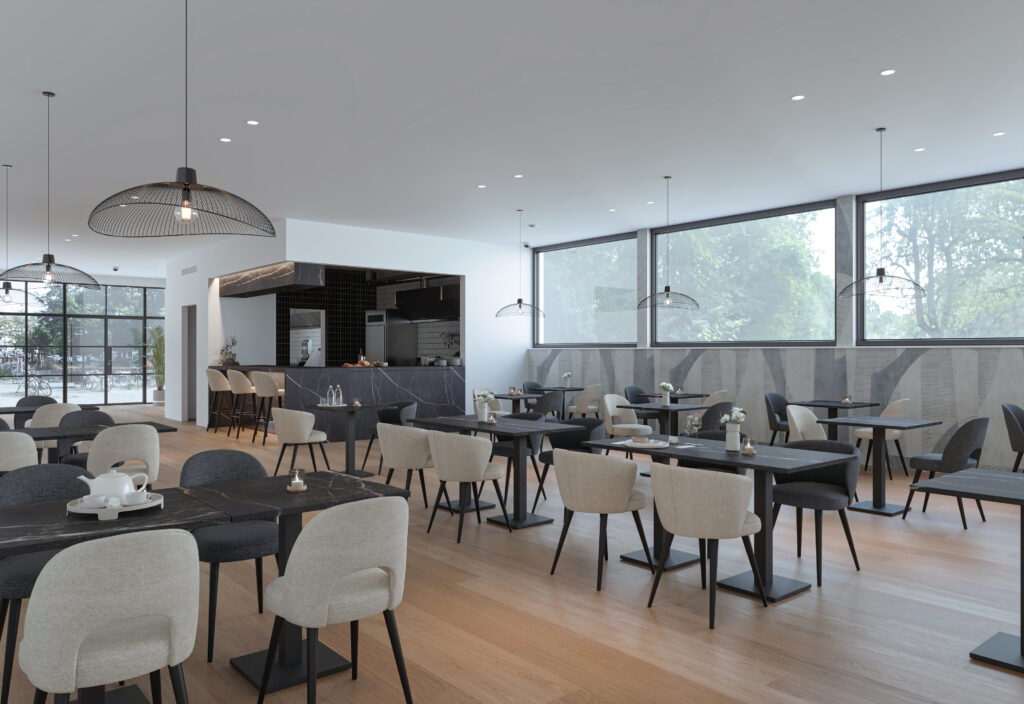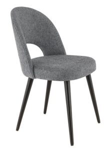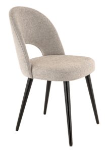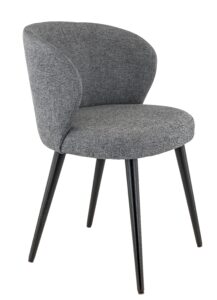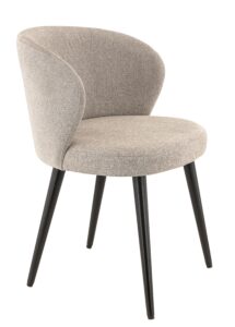 Très élégante série Victory Dining en hêtre massif teinté noir, assise et dossier capitonnés en tissu Sorella et suivi dans les coloris grège et gris foncé (autres coloris nous consulter).
